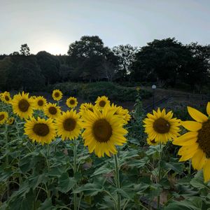 【まだ頑張っています】 るるパークの🌻さん 10月半ば過ぎていますが お行儀よくおひさまの方を向いて咲いています ①〜③ ④蜂さんも頑張ってます