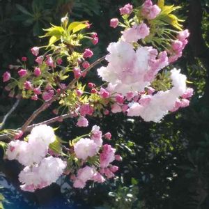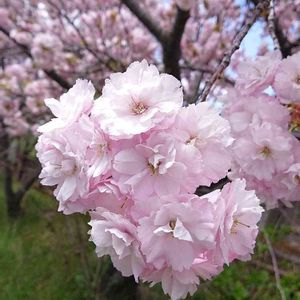 一房に咲きすぎ😊💕 くす玉🎊みたい(笑) 白っぽい八重桜もあるのね…😄