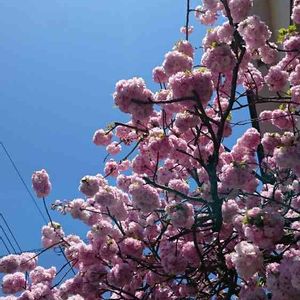 マンションの八重桜が満開になりました。 今週も上を向いて頑張ろう。