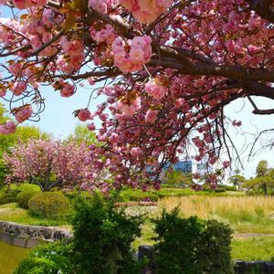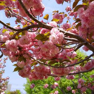 松本歯科大の桜は有名でコロナ前は観桜会も開催していたみたい。 今、八重桜が満開🌸🌸🌸 まるでぼんぼりのよう。まあるい形がかわいいです。 濃いピンクは楊貴妃 薄いピンクのは一葉 艶やかです💗💗💗