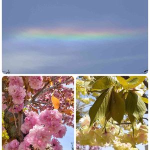 八重桜🌸 近くの土手の八重桜が満開に😊 黄色の桜はウコン桜💛咲き進むとピンク色に🌸 どちらもとっても綺麗でした😊 帰りの空を見上げたら虹🏳️🌈が綺麗でした😊 🏷️❤️桜リレー🎵に参加させて頂きます😊 🏷️桜(さくら)リレーこちらにも😊 虹のpicはAM11:19