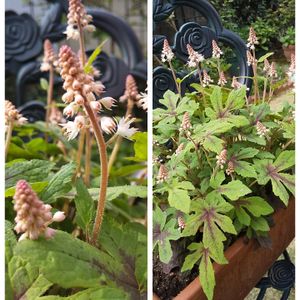 外に出たら空気が暖かく、少し動くと汗ばむ陽気☀️ 明日の雨予報が嘘のようです。 ❁¨̮ティアレア スプリングシンフォニー この他 2種類のティアレアを育てているのですが、葉色は違ったりしますが花姿は微妙に違うだけなので代表でこの子を選抜🏆 葉色が違い、花が似た感じの所はヒューケラーに似てますね😊 線香花火のパチパチと弾ける姿を連想させるその姿が可愛い💕