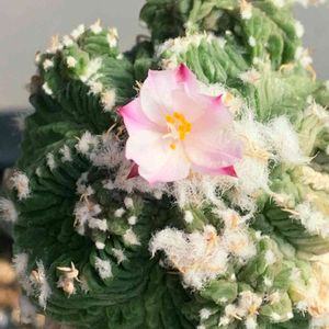 サボテン科 アズテキウム属 ヒントニー。🐱🐱 成長点のアレオーレがフワフワで、いつも癒されてますが 横の門にも所々アレオーレの綿が…🤓😆(笑) 可愛いです。😋