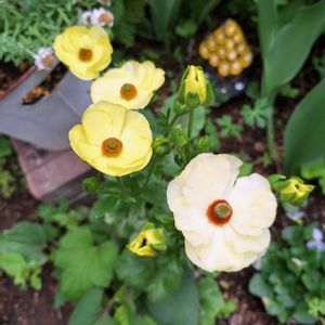 ラナンキュラスラックス ハリオス💛✨💛 2年目の春 成長が緩やかで 心配してましたが 小さめのお花達が 咲きだしました~💓♥️❤️ ほんとに植えっぱなしで大丈夫なのね 嬉しくて 可愛いお花さん💠