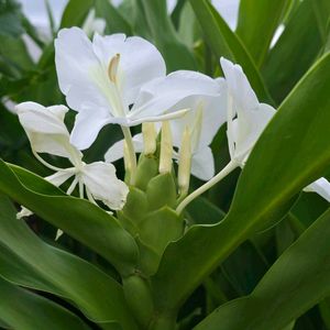 おはようございます(˶ᐢᗜᐢ˶) 🌸 ジンジャーリリー 🌸 今年も 綺麗に咲いてくれました 🤍 水分不足で 🌿が 丸まってきています 今日☔で 復活出来るかな 🤔 気温が下がるので その前に 蕾 みんな咲けるかな(´・ ・`) 気温の変化が 激しいので 皆さまも 体調管理 お気をつけけて下さいませ 😊 今月も よろしくお願いします🙇♀️