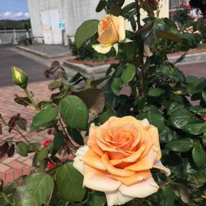 バラ マリリンモンロー 島田のばらの丘公園にて撮影 ニュースで言っていたので見てきました。 オレンジ色のHT、中香 ウィークスのバラ 色っぽいのかなぁ?……🎵