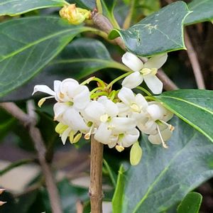 "木曜日は木に咲く花" ご近所の庭先。 ヒイラギが可愛い花を咲かせ芳香を漂わせています。 📷️ 2024.11.25
