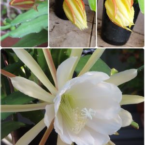 "孔雀サボテン咲き方観察" 知人からいただいた孔雀サボテン。 蕾を付けてくれたので、咲くまでを観察してみました。 5/28に膨らみ始め、6/2に大きく膨らみ、6/3の朝には豪華な花を咲かせました。 約1週間の開花ショーを楽しませてもらいました。 撮影日 2023.5.28~6.3