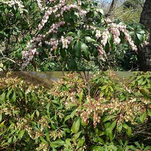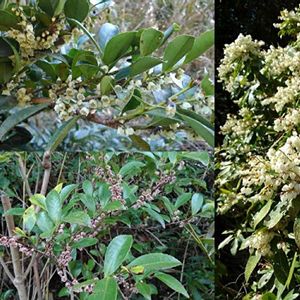 「ヒサカキ」の花だと教えて頂きました。 右側の花は馬酔木ですが、左側の2つもアセビの仲間でしょうか🤔?
