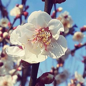 白梅がチラホラ咲き始めました(*˘︶˘*).。.:*•*¨* 白いお花を見ると、なにか清々しい気もちになりますし、馥郁とした香り、(*´ ˘ `*)ダイスキ♡