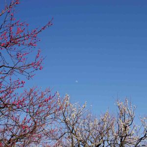 昔のものですが、紅梅と白梅と昼間の月のコラボレーションです🌸🌙*゚ ちょっといい感じ😃