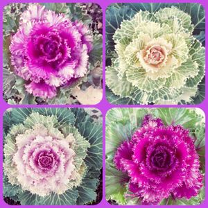 葉牡丹って、よく見るとみ〜んな違う顔をしていて、綺麗な色合い🍀✧︎*🍀✧︎*🍀✧︎*🍀✧︎*🍀 自分では、ほとんどお迎えすることないのですが、こんなコラージュをしてみたくて、公園でつい(*ˊᵕˋo📷oパチリ✦*