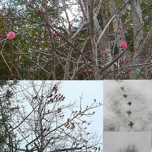 紅梅が咲いてる😃~🌸 あと、このアプリで知ったユリノキ🌳 木の皮の花みたいに残った…実?か種かな。 雪、昨日降ったけどほとんど積もりませんでした\(^o^)/❄︎.* 今日は晴れて溶けちゃった(笑)☀ 雪に鳥(カラスかな?)とちっちゃな犬の足跡が🐾 公園に雪の日で誰もいなくても、車でポメラニアンかチワワかちっちゃなワンコを連れて散歩にくるマダムがいらっしゃって🚗³₃ 長靴とちっちゃな足跡がいっぱいあったので、「今日も寒い中連れてきてもらったんだね~。寒いのにいっぱい歩いて(笑)」と微笑ましく思います(笑)🐩