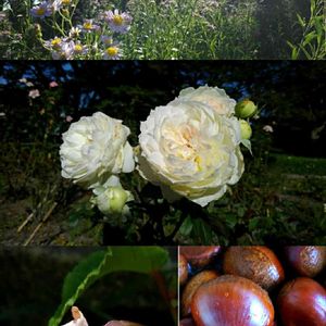 皮が弾けている栗はいかにも美味しそう✨ 栗ご飯、美味しく頂いております😋 さつまいも入れたのも良い🍠🎶 うちの庭にポツンと咲き始めたシュウカイドウ🌼*・ ノコンギクが綺麗です❀.*・゚ 蝶々が舞っていてそれがさらに美しい⋆͛🦋⋆͛ →シオンという花のようです。 白くて花びらがいっぱいの薔薇🌹私は、白いバラが好きだな。