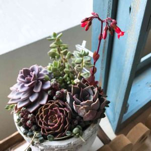 こちらは、 クマちゃんカップル🐻🐼が居た寄せ植えです👩🌾💐 数珠星も無事に植えて、 ややブルーでまとめてみました☺️💕 大きくなってきた子達🌿✨ 花芽などの生長も楽しみです😌🌸 今日は、ホワイトデーだそうで🤓🎁 皆さん何かもらうのかな☺️ ウチは無いかなと思います😂👋笑
