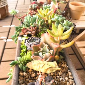セールでゲットした、 50〜150円苗の子を中心に☺️💐✨ 徒長しちゃってた子達にも、 ちゃんと、下や途中に赤ちゃん居たので、 そのまま枯れた葉っぱだけ取りました👩🌾 ぴょ〜んって左手から手前に出てる子、 自由な感じが、お気に入りです🌿 右側には、先程の雑貨を乗せて🏡 こうしたら、今はまだ、 多肉少なくて済むなーって😂👏✨笑 一気に増やすと、 また植え替えが忙しくなって焦るし、 そうすると、なんか嫌になって。 多肉以外の何かでスペース埋めて、 のちにまた、楽しみ取って置きます👩🌾💕 そゆのが、好きです☺️🌸 今日は春の嵐になるそうです‼︎ 飛ばないようにしておきます👩🌾🌿