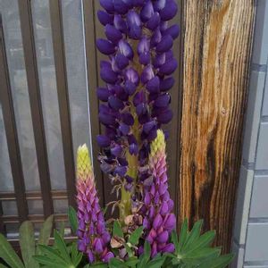 こんにちは🌞 (🍃は強いですネ) のぼり藤=ルピナス 切りもしどし後立派に咲き また、蕾が三ヵ所に