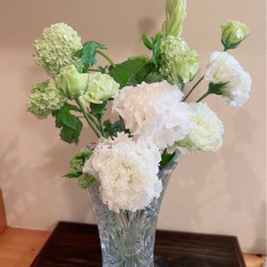 お花好きの上司へ、出産内祝いに日比谷花壇のサブスクを贈りました。 第六弾!と称して、アレンジして写真を送って下さったのがコチラ✨ 今回も素敵〜😍💕 特別贅沢バージョンとの事で、白いお花がなんと1本1100円! リシアンサス セレブリッチホワイトというお花だそうです。仰天😵 贈ったサブスクは、以上です。 初めてのサブスクを楽しんで頂けたようで、とても喜んでもらえました♪ 私も楽しかったです☺️