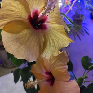 大船フラワーセンターにて…💐 温室の中のハイビスカス🌺 薄暗い中に少しのライトで照られて昼間見るハイビスカスとはちょっと違って幻想的~❤