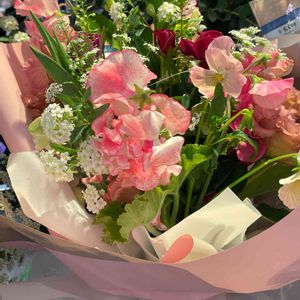 ピンク色の💐ってなんだか乙女チックでウフって☺️貰えたら言っちゃいそう😆😅