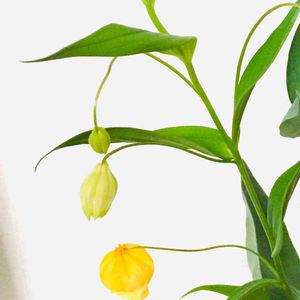 8/6(木)サンダーソニア 明るいグリーンの葉と、提灯みたいなお花が可愛い。 蕾が付いてる。開くかなぁ☺️ PS. お花はすぐに萎れてしまい、蕾も開きませんでした💦 でも葉っぱが元気で、長く活躍してくれました✨