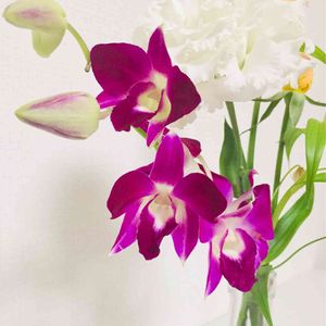 8/11(火)デンファレ 暑さのせいか、花持ちが悪いなぁと感じる今日この頃。 お花歴2ヶ月の少ない経験ですが、デンファレは長持ちした記憶があったので、選びました✨ トルコキキョウの花瓶に仲間入り♪ 蕾が2個、ずいぶん硬そう。 開くのだろうか😳 ・デンファレ(2日目) ・トルコキキョウ(7日目)