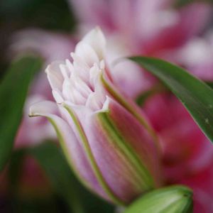 八重咲きのユリへのストーキングがまだまだ止みません。 こちらはこれから開花しようとしているところです。 ユリは必ず蕾を開いてくれるので切り花の中でも特に信頼しております。🥰