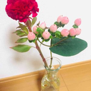 7/7(火)ケイトウ、ヒペリカム 初めてのケイトウ。 店頭で物凄いオーラを放っていて、つい手に取りました😳 個性が強くて、どう生けてあげれば良いかわからない😵 どうしよう💦持て余しています。