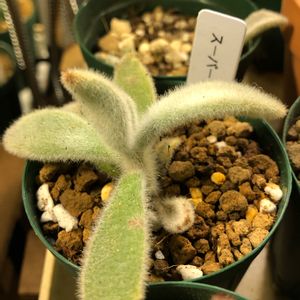 スーパーデッカー カランコエのウサギシリーズのひとつ。 白い部分が多い感じですね。 これも養生しながら育てているパターン。 もうそろそろハウス行きにできそう。