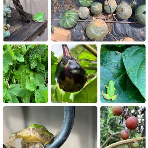 🏷オケツの日 🏷野菜の日 我が家で育てている野菜のオケツ(笑)と 今日撮りたて今年生まれたアマガエルべびーの オケツ😁 ↙️のオケツ可愛いでしょ😁 ↗️コンポストの土からのひとり生えで 出来たかぼちゃ🎃 いっぱい出来ました〜😊