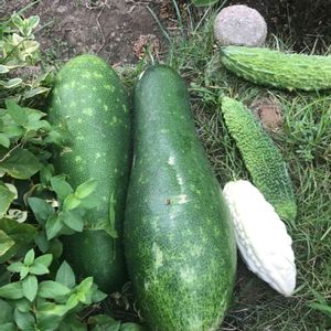 今日は、語呂合わせで831(やさい)の日 コンポストの堆肥からの 冬瓜が胡瓜の柵を壊しかねないぐらいに なったので、ゴーヤと一緒に職場の人に おすそ分けするために切ってみました。 採るのにもひと汗💧でーす。