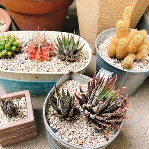 サボテンの寄せ植え、分けたところ。根っこが湿ってたので乾かしつつ、何に植えるかゆっくり考えます(*‘ω‘ *)