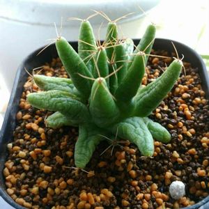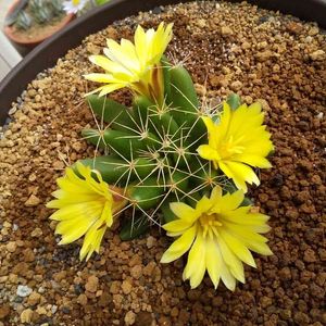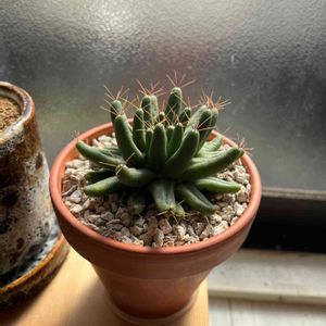 5/12に投稿した金星を植え替えた時、ポロッと取れてきたおまけみたいな小さい株を別植えしてたら、そちらも咲きました。 しかも大きい方より花数多いや。 (真ん中上側にもひとつ花芽が控えてる)
