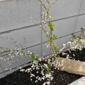 お家の外に植えたユキヤナギ。 少しずつ咲いています😅