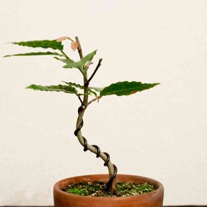 小さな盆栽。 うぶ毛の様な葉が開きました。