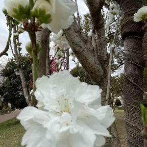 4月24日 今日のお花 *:.。..。.リキュウバイ .。.:*・ 別名 バイカシモツケ 開花期 4〜5月 樹高 3〜4m 明治時代に渡来した。 服部緑地都市緑化植物園 2025.4/10撮影 🏷️清楚な花 🏷️空を見上げて