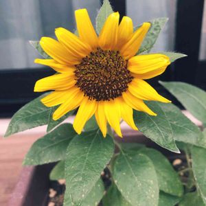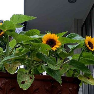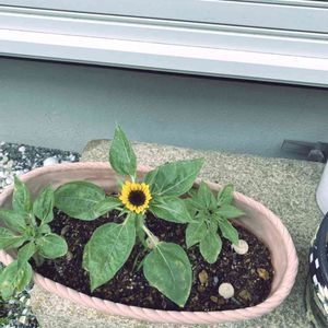 ミニひまわり🌻 軒下の東向きの花壇に植え付けたものは順調に育っています👌🏻