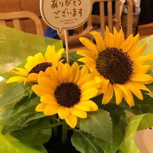 結婚記念日に貰った、ミニひまわりの小夏ちゃん💕 この花が枯れたら、次の花は咲くのかな〜 1つ花がもう散ってしまった😂出来るだけ長く咲いてほしい😂