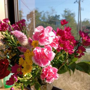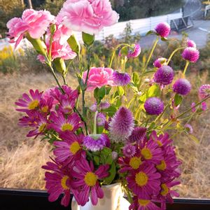 職場のキッチンフラワー🩷🛵村中花散歩、花屋さんで切り花を😎😄