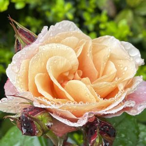 薔薇が次々に満開になる中、雨の日が多いですね☔️ 我が家の薔薇と皆さんの投稿を見て癒やされています🌹 庭の薔薇たちが全体的にほぼ満開になってきたので 隣の市の薔薇園にワクワクしながら行ったら全然咲いてなくて😂 うちの庭は少し開花が早いみたい? 南向きで陽当たりが良いのか暖かいのかなぁ? もう塀際のツル薔薇は終わりに差し掛かり 雨で下を向いてしまっているので 明日、時間があればカットしようと思います。 大輪のツル薔薇が無くなると一気に 景観が寂しくなっちゃうけど🥲 少し遅れてラベンダーラッシーが 五分咲きくらいになってきました🌹 基本的には大輪で華やかなのが好みですが 最近は可愛らしい小輪も好きになってきて ラベンダーラッシーもシュルプリーズも とっても可愛いです😍 まだ蕾すら見えないのはパブロワと フロレンティーナくらいかな? 今年大苗でお迎えしたアルゴノーツの一番花は ソフトピンチして今、二番花の開花待ち なのでとっても楽しみ🧡