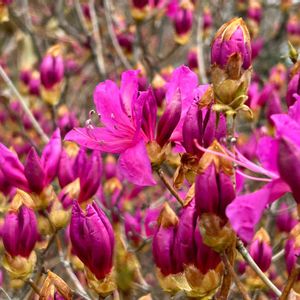 小石川植物園 5 タンナアカツツジの蕾の色がハンパない🥰 自然と足が向かいました🎶 耽羅赤躑躅(普通には読めません💦) 和名は、原産地(耽羅=済州島の古名)名に因む。 属名は、Rhodon(=バラ)とdendron(=樹木)で、「紅い花をつける木」の意