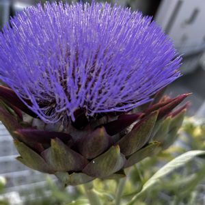 ご近所の 花友さんのお庭💖 いつも 素敵な お花を 育て 咲かせてはります💜💜💜 「アーティチョーク」 「アンティーチョーク」 …φ(..)メモメモ👇👇👇 『 開花前のふっくらとした蕾を収穫し、萼のつけ根と花托(かたく)を食べます 』 蕾の時の姿も💚素敵でした💚💚 🤳撮ったはずなのに…無い😅 残念( ˟_˟ )スミマセン