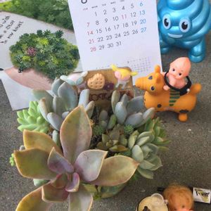 おはようございます☀️😖☀️ 🏷ごっつご機嫌な🗓カレンダーで(*´∀`*) 🏷カレンダーの日🗓参加させて頂きます🙋♀️ カレンダーは、大好きなちまちま寄せのMaiさんのモノ💕 そして…どこがご機嫌なの??っていうスッカスカの寄せ植え 全体的に暑さにやられ🐾足元悲惨なんだけど 手前の多肉ちゃん!!涼しい顔で1人成長期?! 🤣🤣🤣 いつの間にか超∑(°口°๑)でかい! 自慢のケラさんのミジンコ鉢も全く見えないね💦💦💦 (‥ )ン? 久しぶりにご機嫌でオールで酔いつぶれたか?? 酔いどれキュピが…🌀🤣🤣🤣