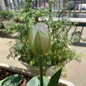 最後に咲いているグリーンと白のチューリップと友人から去年もらって種を蒔いていたオルレアとニゲラがこんなに成長しました。どれがオルレアでどれがニゲラか??わからずじまい。 お花が咲くのが楽しみです💕☺️🙏