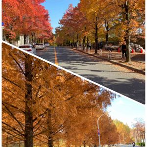 ✨とても素敵な並木道✨ 電車で40分ほどかかる所、昨日、花友と行ってきました。 上pic は 三色彩道 とよばれています。 アメリカフウ、タイワンフウ、トウカエデの三種の落葉高木樹🍁🍁🍁 このpicの街路樹はタイワンフウですがとても美しいです。路肩に車を止めて撮影の方が多かったです。 下は メタセコイアの並木道 金色に輝いているメタセコイアも見頃でした✨ 魅力的な場所なのに人はほとんどいません。穴場だと思います😊 好天に恵まれて、心地よく紅葉巡りが出来ました。 コロナ感染拡大と不安になるニュースの中、心落ち着く場所でした💗