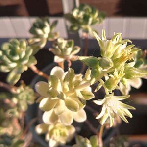 数年うちにいる「愛染錦さん」 初めて 咲いたよ💓 ハオやエケは、あからさまに花芽って感じだけれど… この子のは、お花という感じより…葉の延長?というくらい、雰囲気や色味が一緒(*^^*) 同化してる(笑) さてさて 伸びに伸びたこ子どもたちの髪を切りに、今日はお出かけ💨