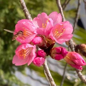 近所の通りの河津桜🌸 虫さんも待ってだとばかりに🐝