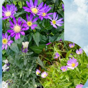*フレンチラベンダー オーシャンブルー💜 *クラスペディア・グロボーサ💛 ポンポン可愛いお花𖤣𖥧𖥣。𖤣𖥧𖥣。 *カンパニュラ・涼姫 薄紫のお花で満開💜