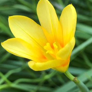 おはようございます( ˶˙ᵕ˙˶ )☀️ ホメリア エレガンスが風に揺れて咲き始めました。 細長い葉に黄色い星形の花が可愛いホメリア。花びらが6つに分かれ、花先が尖っています。 名前の由来は「会合する」と言う意味のギリシャ語「ホメレオ:homereo」から。「集り」または「寄りそう」事。雌しべを囲むように雄しべが筒状に寄りそっています。 実はこの花、一日でしぼんでしまいますが、一本の茎から次々に花が咲き続けます。原産地は、南アフリカのケープ地方で別名「ケープ・チューリップ」 花言葉は「感受性」 🏷日曜日はビタミンカラー 参加させてくださいね💕︎