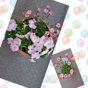 ❁. 。ペチュニア'ホイップマカロン'。.❁ ホイップのようなふんわりとした かわいい八重咲き品種🍰🤍 ドーム型に広がりボリューム満点です🧁 なんとも言えぬピンク色が とってもかわいいペチュニア💕 栄養系なので丈夫で長く楽しめます🎂 *育て方* 日当たりの良い場所を好みます☀️ 水やりは土の表面がしっかり乾いてからあげてください🌱開花期は定期的に肥料を与えてください。